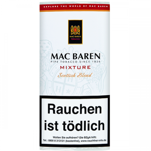 Ο Καπνός Πίπας Mac Baren Mixture Scottish 40gr είναι ένας καπνός από μείγμα ώριμων Virginia και χρυσοκαφέ Burleys στο οποίο έχουν προστεθεί Cavendish και πιο απαλά Virginia. Είναι απαλός και ελαφρύς αρωματικός καπνός.