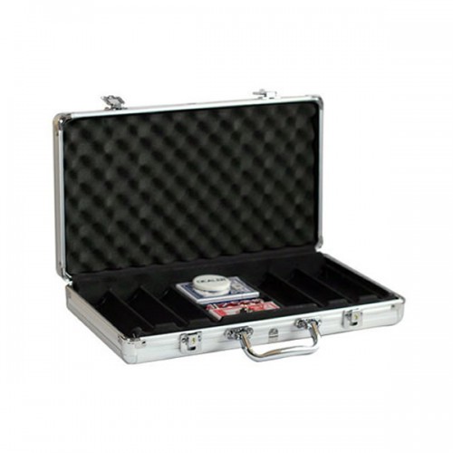Αλουμινένια βαλίτσα ειδικά κατασκευασμένη για την αποθήκευση μαρκών. Το εσωτερικό μέρος της βαλίτσας έχει θήκη κατασκευασμένη από βελούδινο υλικό με γραμμές που ταιριάζουν στις μάρκες. Υπάρχουν 6 σειρές για 50 μάρκες dice 11,5 gr. η καθεμιά. Υπάρχουν επίσης θέσεις για 2 τράπουλες Modiano και ζάρια. Έχει λαβή και δύο κλειδαριές με κλειδιά.