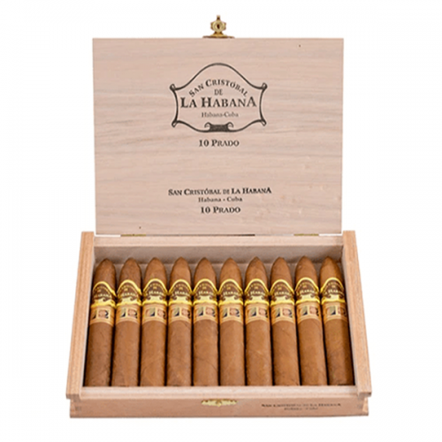Ηφίρμακυκλοφόρησε το 1999 ως φόρος τιμής στην ιστορία της πόλης της Αβάνας, παλαιότερα γνωστή ως San Cristobal. Κάθεσειράπήρε το όνομά της από τα τέσσερα φρούρια που κάποτε προστάτευαν την πόλη: San Cristobal El Morro, San Cristobal La Fuerza, San Cristobal La Punta και San Cristobal El Principe.Το San Cristobal El Principeφέρειυπέροχα αρώματα μοσχοκάρυδου και κανέλας. Προσφέρουν πλούσιες γεύσεις κέδρου, καφέ και μιαβελούδινηυφή από τον πυκνό καπνό. Το San Cristobal de la Habana Prado Specialist Edition κυκλοφόρησε το 2019 για νατιμήσειτα 20 χρόνια τηςφίρμας.Αποδίδειτόνουςξύλου, μευποψίεςδέρματος και μπαχαρικών. Υπάρχει επίσηςέναάρωμααμμωνίας,τοοποίοθα παραμείνειαντιληπτόσε όλοτοπούρο.Ηισχύςείναι μέτρια – ελαφριά.