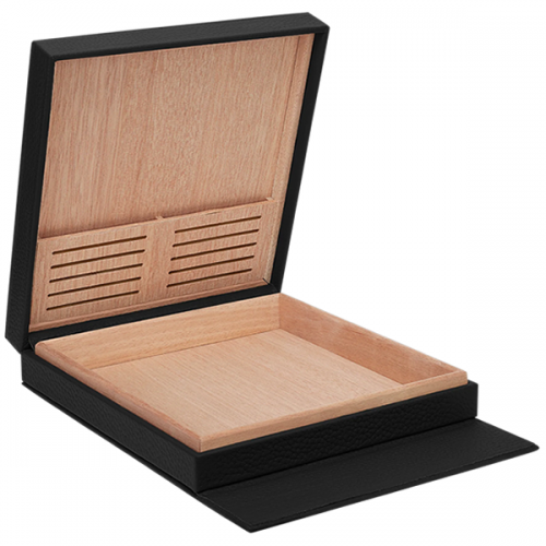 Φορητός υγραντήρας πούρων S.T. Dupont. Άνετο σχήμα, κομψό στυλ. Εξωτερικά κατασκευασμένος από μαύρο δέρμα με υφή, εσωτερικά από ανθεκτικό ξύλο Okoumé. Διαθέτει μαγνητικό σύστημα ανοίγματος από πάνω προς τα κάτω. Χωρητικότητα έως 8 πούρα.