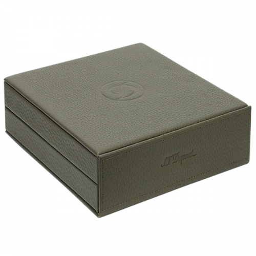 Φορητός υγραντήρας πούρων S.T. Dupont. Άνετο σχήμα, κομψό στυλ. Εξωτερικά κατασκευασμένος από καφέ δέρμα με υφή, εσωτερικά από ανθεκτικό ξύλο Okoumé. Διαθέτει μαγνητικό σύστημα ανοίγματος από πάνω προς τα κάτω. Χωρητικότητα έως 8 πούρα.