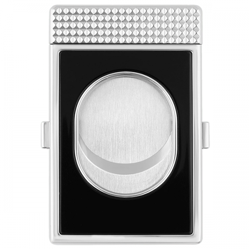 Κόφτης πούρων Cutter Slim Perfect Cut, διακοσμημένος με μαύρη λάκα και χρωμιωμένο φινίρισμα επιφάνειας. Διαθέτει διάμετρο 23 mm και ρυθμιζόμενο βάθος κοπής 2,7 mm.