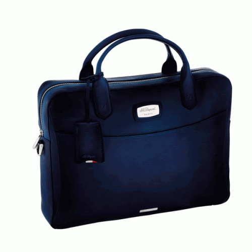 Τα αξεπέραστα κομψά αξεσουάρ συνδυάζουν την δερματοστιξία με διαχρονική τεχνική στην γκάμα Atelier. Το λεπτότερο δέρμα μόσχου επεξεργάζεται σχολαστικά με το χέρι χρησιμοποιώντας τις κληρονομιές ST Dupont για να αναδείξει την ομορφιά και την πλούσια πατίνα του κομψά γερασμένου μπλε δέρματος, δημιουργώντας ένα ξεχωριστό και μοναδικό σύντροφο ταξιδιού. Αυτός ο χαρτοφύλακας έχει εσωτερικές λειτουργίες, όπως δύο επίπεδες τσέπες για τηλέφωνα και χαρτιά, μία τσέπη με φερμουάρ, μια μεγάλη θήκη για έγγραφα και ένα φορητό υπολογιστή, καθώς και αφαιρούμενο και ρυθμιζόμενο ιμάντα ώμου.
