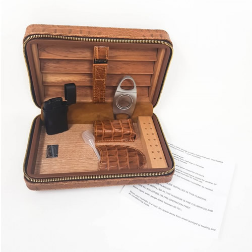 Πουροθήκη Δερμάτινη Σετ Sikarlan με υγραντικό στοιχείο, αναπτήρα και μεταλλικό πουροκόφτη.