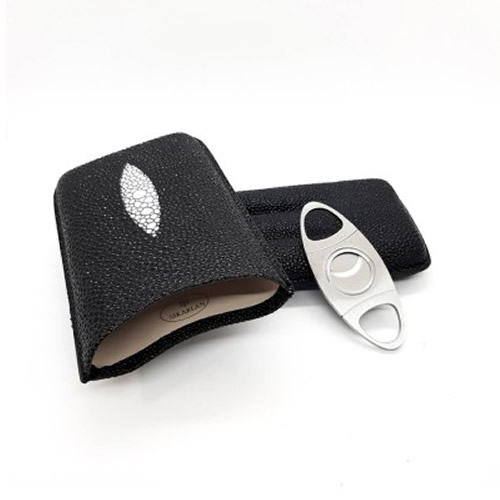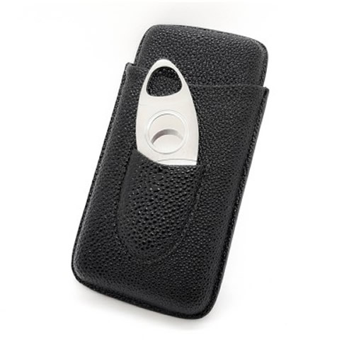 Δερμάτινη Πουροθήκη με μεταλλικό κόφτη για 3 πούρα.