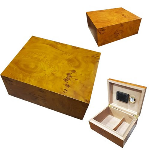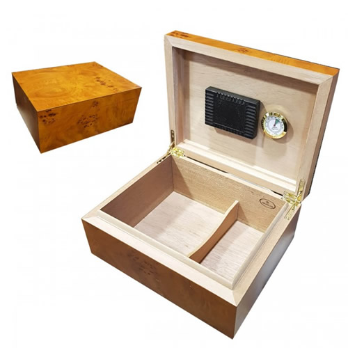 Υγραντήρας πούρων με ματ φινίρισμα και ξύλο καπλαμά, με μετακινούμενο διαχωριστικό.
