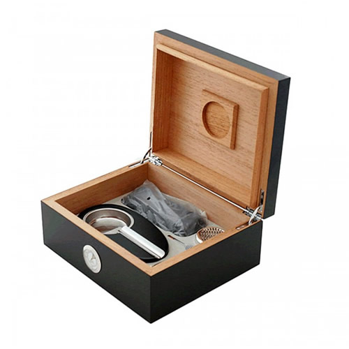 Υγραντήρας πούρων σετ με μονό σταχτοδοχείο, πουροκόφτη γκιλοτίνα και διπλή πουροθήκη με εσωτερική επένδυση από κέδρο.
