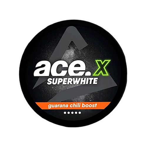 Ace Superwhite X Guarana, μια τέλεια επιλογή για εσάς που θέλετε να απολαύσετε κάτι δροσιστικό και τονωτικό με διακριτικό τρόπο. Αυτά τα σακουλάκια νικοτίνης χωρίς καπνό προσφέρουν γεύση ενεργειακού ποτού και της πιπεριάς τσίλι habanero μαζί με ισχυρά και εξαιρετικά δυνατά "χτυπήματα" νικοτίνης (20 mg / σακουλάκι). Η πρωτοποριακή γέμιση φυτικών ινών που χρησιμοποιείται για αυτά τα σακουλάκια τους δίνει έναν λευκό χαρακτήρα, κάτι που εξαλείφει τον κίνδυνο να λεκιάσουν τα δόντια σας, ενώ ελαχιστοποιεί επίσης την στάγδην. Συνδυάστε το με το άνετο λεπτό τους μέγεθος και έχετε κάτι πραγματικά διακριτικό που προσφέρει μακροχρόνια απελευθέρωση τόσο γεύσης όσο και νικοτίνης.