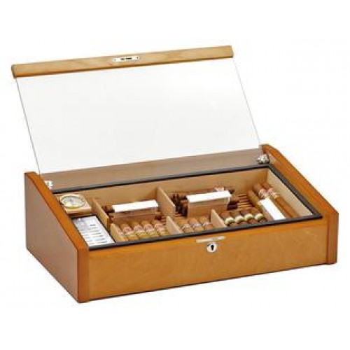 Ένας κομψός υγραντήρας με γυάλινη κορυφή από υψηλής ποιότητας πολλαπλές επιστρώσεις λάκας σε μαόνι