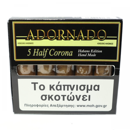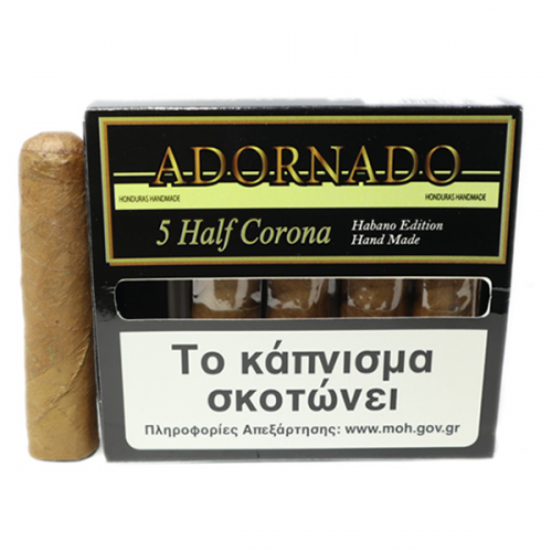 Τα πούρα Adornado Half Corona κατασκευάζονται στην Ονδούρα και είναι 100% χειροποίητα από επιλεγμένα φύλλα καπνού.