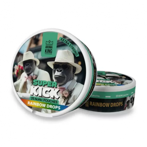 Ζήστε ένα δυνατό και αναζωογονητικό “χτύπημα” νικοτίνης με τις θήκες νικοτίνης Aroma King Super Kick Rainbow Drops. Αυτές οι θήκες προσφέρουν μια ικανοποιητική και μακράς διαρκείας γεύση χωρίς καπνό. Απολαύστε την άνεση και τη διακριτική φύση αυτών των σακουλών, ιδανικών για χρήση εν κινήσει. Δοκιμάστε τα σήμερα για μια σούπερ δόση ικανοποίησης από τη νικοτίνη.