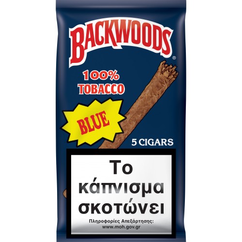 Τα Backwoods Blue είναι ένα πολύ ελαφρύ, νόστιμο πούρο, με γεύση βανίλια. Μόλις ανοίξετε το πακέτο, θα συναντήσετε ένα δυνατό, γλυκό άρωμα που δεν μειώνεται όταν το απολαμβάνετε. Οι χαλαρά τυλιγμένες μορφές είναι ιδανικές ως σύντροφος για να γλυκάνετε την ημέρα. Αν και κρύβουν την καθαρή απόλαυση του καπνού, είναι ένα κορυφαίο αρωματικό προϊόν.