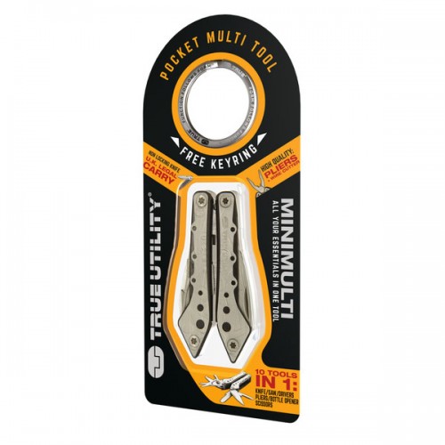 Το MINIMULTI της True Utility είναι ένα έξυπνα σχεδιασμένο πολυεργαλείο 10 σε 1, με στενό σκελετό για ευκολία στην μεταφορά και γρήγορη χρήση. Κατασκευασμένο με πλάκες κάλυψης για εύκολο κράτημα από ανοξείδωτο ατσάλι 420, το MINIMULTI είναι δυνατό, αξιόπιστο, άνετο στη χρήση και απαραίτητο αν ψάχνετε για ένα μικρό πολυεργαλείο τσέπης.