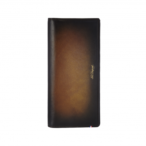 Ένα εκλεπτυσμένο πορτοφόλι σχεδιασμένο για να ικανοποιεί τις ανάγκες ενός σύγχρονου ταξιδιώτη. Από τις πιστωτικές κάρτες μέχρι τα έγγραφα, αυτό το ευπροσάρμοστο και ακριβές εξάρτημα είναι απαραίτητο. Από γυαλιστερό λεπτό καφέ δέρμα, επεξεργασμένο με μια παλαιά τεχνική ST Dupont, που ενισχύει την πατίνα, είναι ένα κομψό στυλ για έναν γρήγορο τρόπο ζωής. Αυτό το πορτοφόλι διαθέτει δεκατρείς θέσεις για κάρτες, μια θέση με φερμουάρ για κέρματα, δύο θέσεις για χαρτιά, τραπεζογραμμάτια και δύο άλλες τσέπες για χαρτιά.