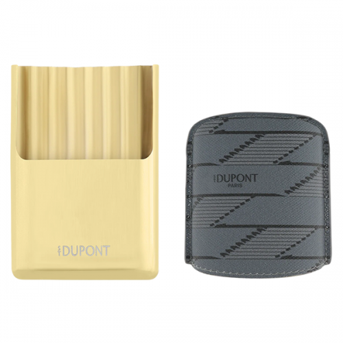 Θήκη τσιγάρων Monogram 1872 από επενδυμένο ύφασμα σε απαλό μαύρο τόνο. Η σχεδίαση ενσωματώνει την επιδεξιότητα της S.T. Dupont στη μεταλλουργία και τον επενδυμένο καμβά, με το καινούργιο σήμα S.T. Dupont να εμφανίζεται σε όλα τα μέρη της σειράς Monogram 1872