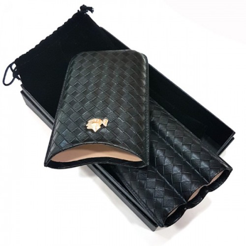 Τριπλή πουροθήκη από γνήσιο δέρμα με πλεκτή όψη και διακριτικό σήμα της Cohiba σε χρυσό, που χωράει κοντά και μακρυά πούρα Magnum. Toro ή και Churchills.