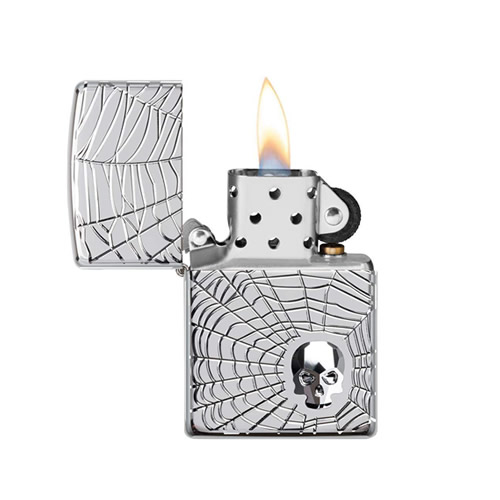 Αυτή η νέα σχεδίαση κρανίου πάνω σε έναν High Polish Chrome αναπτήρα, διαθέτει το μεγαλύτερο κρυσταλλικό κόσμημα Swarovski® που έχει τοποθετήσει ποτέ η Zippo σε αναπτήρα. Ένα λαμπερό κρύσταλλο 3-D Swarovski® σε συνδυασμό με έναν βαθύ σκαλιστό ιστό αράχνης, έχει ήδη κλέψει τις εντυπώσεις των φανατικών της Zippo.