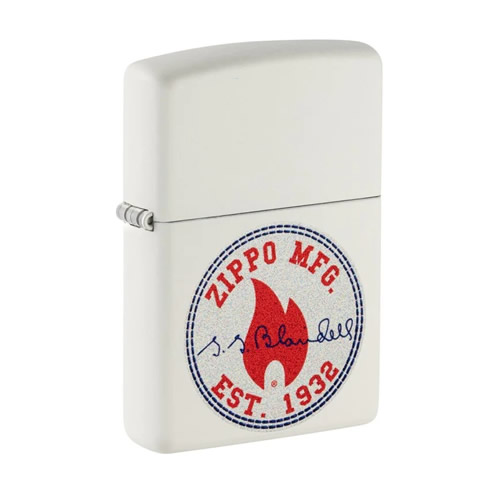 Σε αυτό τον αναπτήρα με φινίρισμα White Matte είναι τυπωμένη με τη διαδικασία Color Image η εικονική φλόγα της Zippo, και η υπογραφή του ιδρυτή της εταιρείας, George Blaisdell.