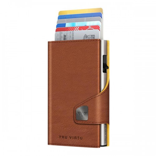 ΠΟΡΤΟΦΟΛΙ TRU VIRTU CLICK & SLIDE EDGE STRAP CARAMBA BROWN-YELLOW/ SAHARA GOLD