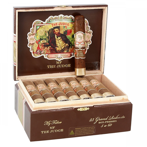 Τα πούρα My Father The Judge είναι ανάμεσα στα ιδιαίτερα περιζήτητα καπνά. Είναι #1 Πούρο της Χρονιάς στο Cigar Aficionado σε περισσότερα από ένα χρονικά διαστήματα. Η συνταγή My Father My Father The Judge Grand Robusto. Με ένα πανέμορφο σκούρο καφέ περιτύλιγμα Sumatra Oscuro, αυτό το full-bodied μείγμα έχει 3 διαφορετικά άνω καπνά από την Νικαράγουα. Το αποτέλεσμα, ένας τολμηρός πυρήνας με εξαιρετικές νότες θερμότητας και γλυκύτητας. Παραγγείλτε τα πούρα σας άμεσα!