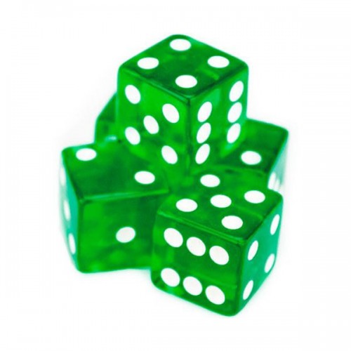 Ζάρια 18 mm διαφανή μη αριθμημένα χρώματος πράσινου σε συσκευασία 1 ζεύγους.
