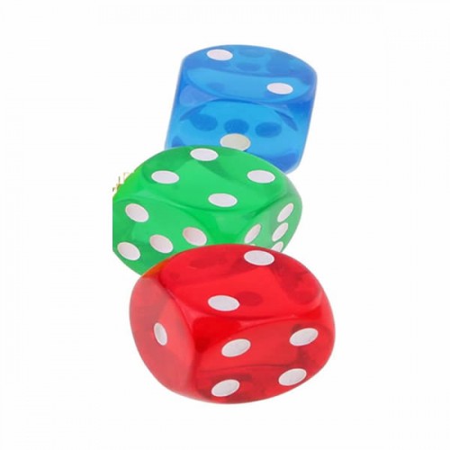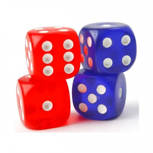 Ζάρια 18 mm διαφανή μη αριθμημένα χρώματος πράσινου, κόκκινου & μπλε σε συσκευασία 12 τεμαχίων.