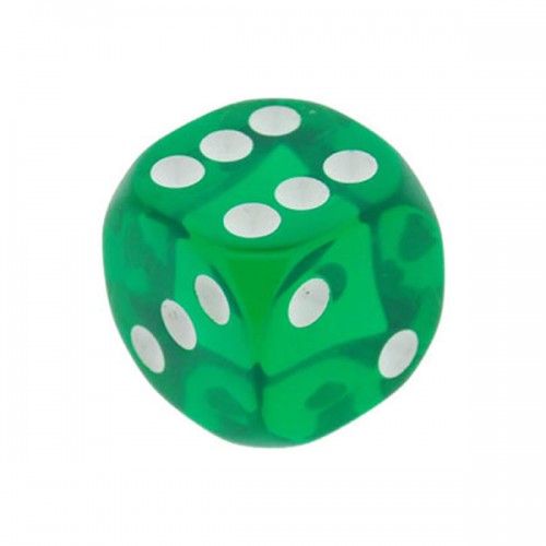 Ζάρια 18 mm διαφανή μη αριθμημένα χρώματος πράσινου σε συσκευασία 1 ζεύγους.
