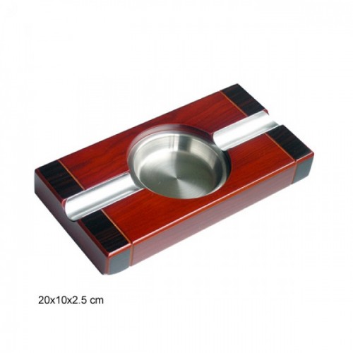Ξύλινο με μεταλλικές λεπτομέρειες τασάκι για δύο πούρα.