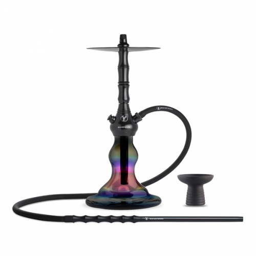 Το SCORPIO MELODY είναι ένας πλήρης ναργιλές από ανοδιωμένο αλουμίνιο με ύψος 40cm. Το βάζο έχει μαργαριταρένιο αποτέλεσμα και ασφαλίζεται με σύστημα κλικ. Αυτός ο ναργιλές έρχεται με σωλήνα σιλικόνης, επιστόμιο αλουμινίου 30 cm και μπολ.