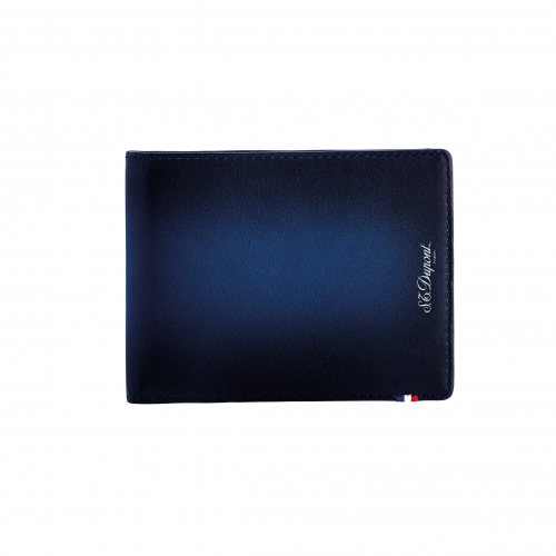 Αυτό το κομψό δερμάτινο πορτοφόλι έξι θέσεων, χαρακτηρίζει το δερμάτινο εφέ Atelier, φέρνοντας τη διαχρονική τεχνική ST Dupont με τα καλύτερα δέρματα μόσχου για να δημιουργήσει μια βαθιά γυαλιστερή απόχρωση του μπλε που αναδεικνύει τη φυσική ομορφιά του δέρματος. Παρέχει έξι θήκες για πιστωτικές κάρτες, δύο επίπεδες τσέπες για χαρτιά καθώς και μια μεγάλη θέση για τραπεζογραμμάτια.