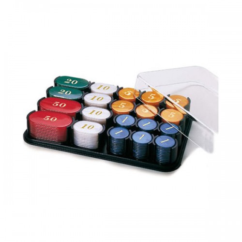 Σετ 200 τεμ. μάρκες πολυεστερικές με αναγραφόμενα ποσά σε πλαστική θήκη.