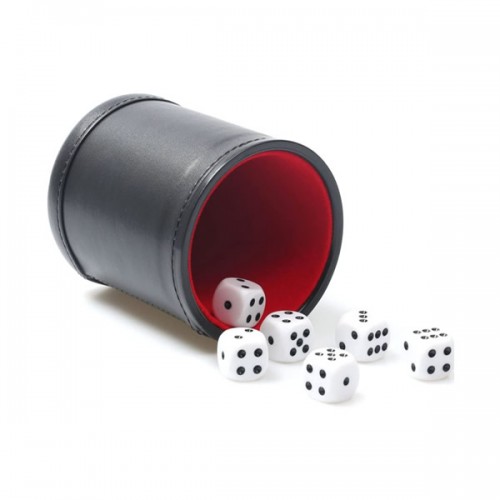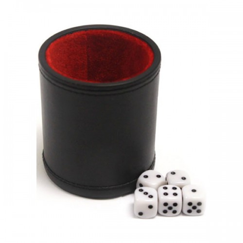 Κουπάκι ζαριών δερματίνης στρογγυλό, με επένδυση τσόχας, κατάλληλο για ζάρια μεγέθους έως 19 mm.